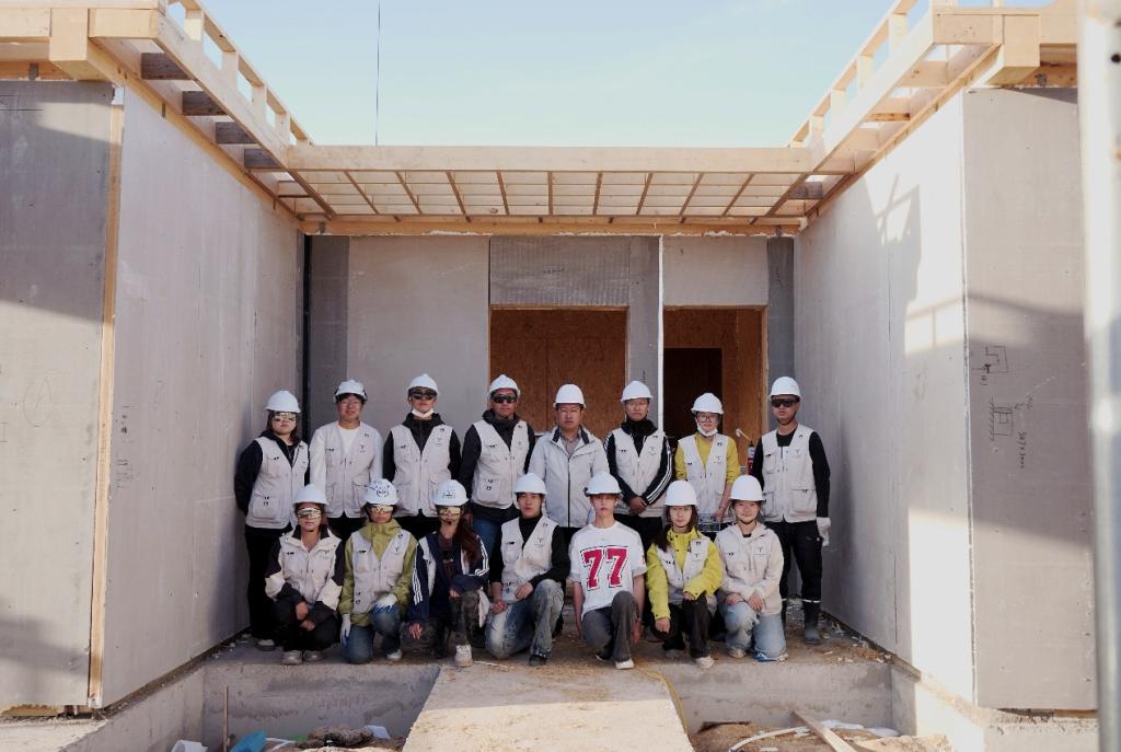 副教授郑彬带领团队进入实体建造阶段。团队融合被动式节能技术与现代装配式建造方式,历经两年打磨、八轮方案优化,以“自然材料+低碳建造+绿色运维”为核心亮点成功晋级。从黄海之滨到坝上草原,烟大建造团队以坚定的科研信念和育人初心,在草原之上构筑起一座融合自然、科技与人文的绿色答卷,展现出烟大人在生态文明建设中的担当与风采。也为未来乡村低碳建设提供了可借鉴的“烟大方案”。