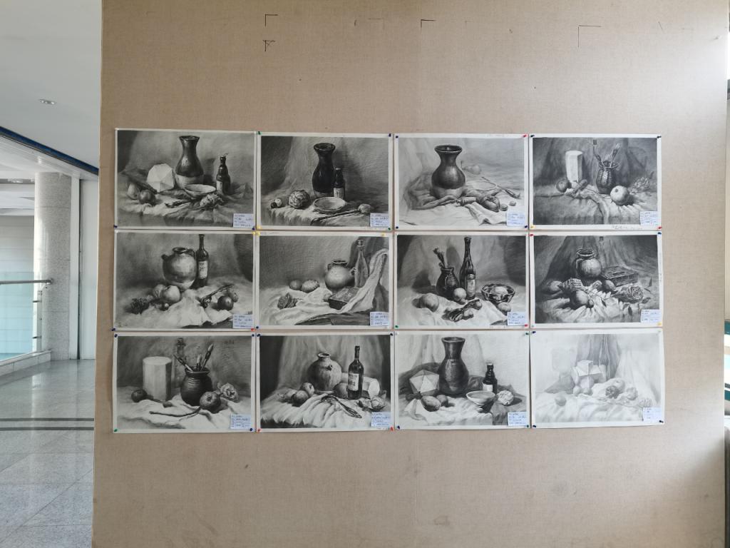 数字媒体艺术专业《造型基础》《速写写生》课程作业汇报展在国产av影片展厅正式开幕。本次展览集中展示了该专业大一学生以“静物素描”与“校园速写”为核心内容的基础训练成果,旨在探讨数字艺术创作语境下传统绘画技艺的根基价值与当代活力。
